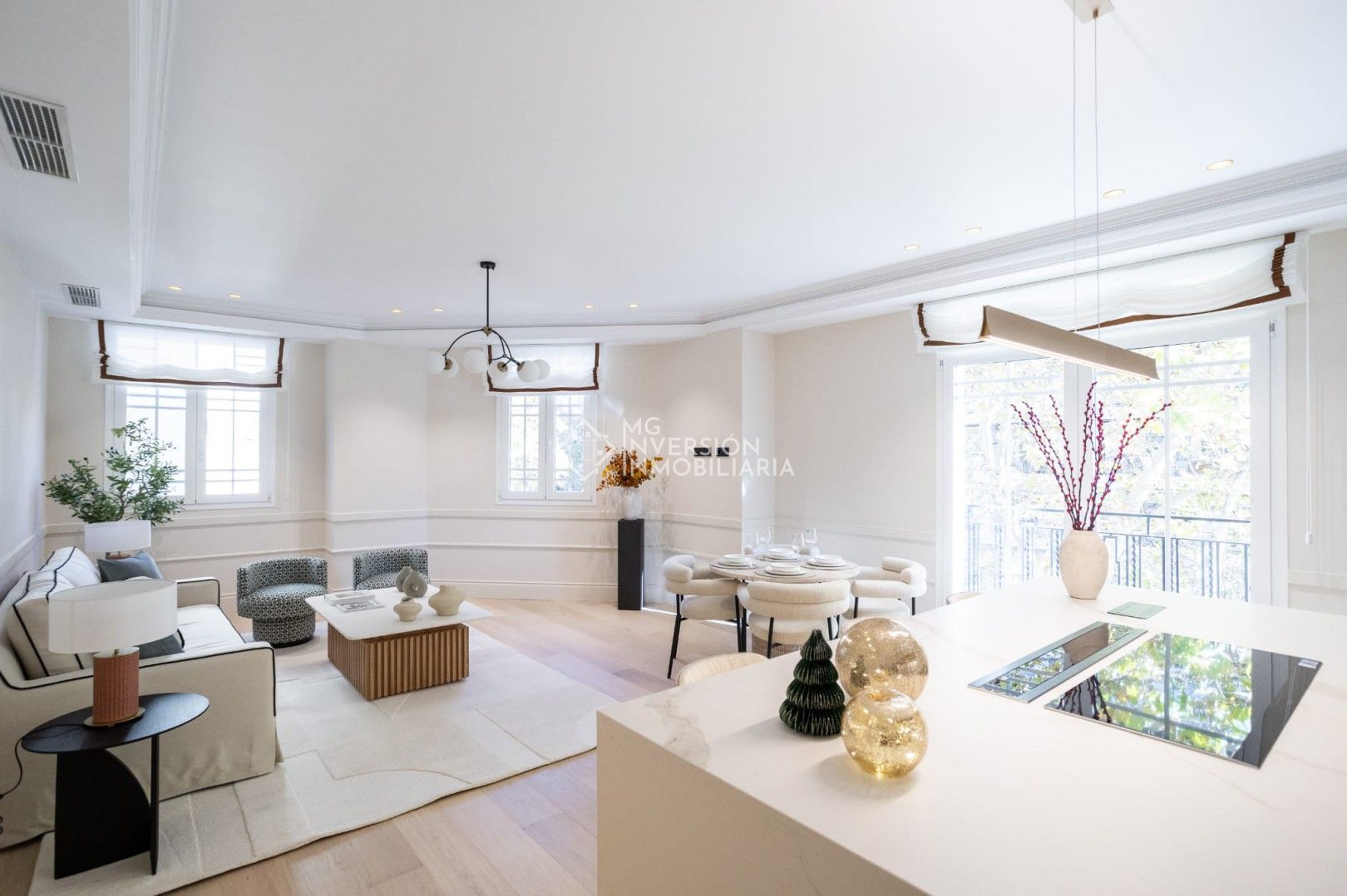 Ubicado en una de las calles más cotizadas y lujosas de Madrid, en pleno barrio de Salamanca. Situado en la tercera planta de un elegante edificio clásico que hace esquina con la calle Conde de Aranda, el piso disfruta de una ubicación privilegiada, a escasos pasos del Parque del Retiro y del prestigioso Hotel Wellington. Distribución y diseño Con una superficie cuidadosamente diseñada, este piso combina elegancia clásica y modernidad funcional.