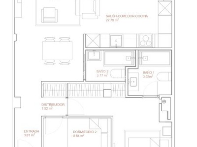 Con una superficie de 92m², este luminoso y acogedor inmueble cuenta con 2 habitaciones y 2 baños completos, perfecto para una pareja o una pequeña familia.